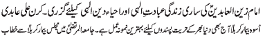 al Abideen (PBUH) dedicated his life for the protection and