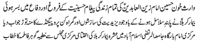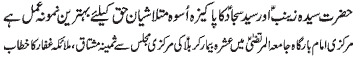tul Murtaza - address of Syeda Quratul Ain to the mourning