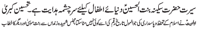 incomplete without Hazrat Sakina (PBUH) - Address of Dr. Farzana