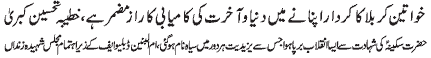 Bintal Hussain (PBUH) tolerated all the hardships of