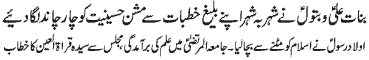 daughters of the nation - Address of Syeda Qura tul Ain Naqvi to