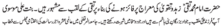 necessary to follow the pious character of Haider e Karraar Hazrat