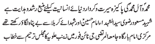 date - Address of Dr Khanum Zahra Gul to the Majlis e Aza held at