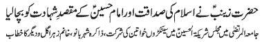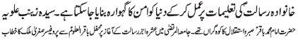 Address of Syeda Zainab Alviya and Professor Sughra Malik to the