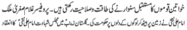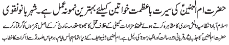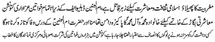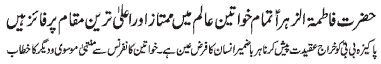 dignity and honor for all women, address of Syeda Binte Ali Moosavi