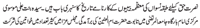 (PBUH); Participation of hundreds of women in the Majlis e Aza at