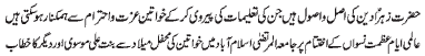 address of Khanum Zahra Gull to the ladies conference on the
