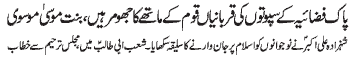 the victory of Islam – Address of Binte Mousa Moosavi to the Mehfil