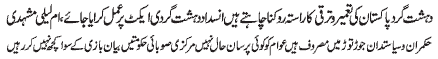 prosperity of Pakistan; The Anti Terrorism Act must be enforced; the