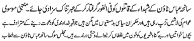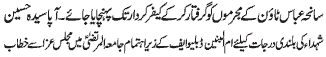 of Syed Muntaha Moosavi to the Majlis e Sog, held for Abbas Town