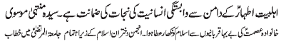 declaration of Ghadir was made - address of Bint e Musa Moosavi,