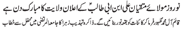 Nouroz is the blessed day of the declaration of Walayat of Ali