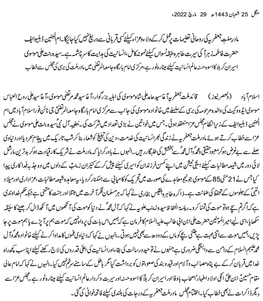 While following Madre Millat e Jafariya no stone will be left unturned for the mission of Wala O Aza